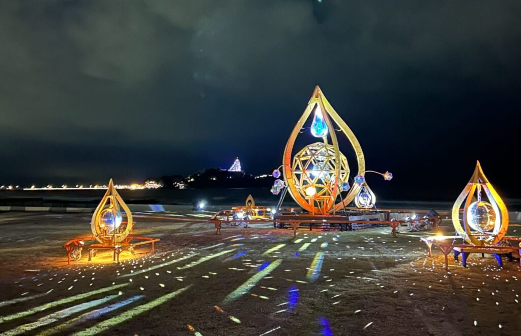 今回新たに「鵠沼海浜公園 HUG-RIDE PARK」も会場の一つとなり、「湘南の宝石 HUG-RIDE PARK~ Seed of beginning ~」が開催!大きなタネのオブジェを中心に、湘南サンセットと「湘南の宝石」が一体となった光の芸術的空間を体験できます。