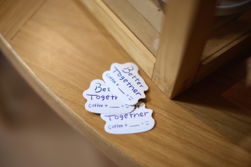 ▲フリーパス特典は、Better Together Coffeeロゴのオリジナルステッカー。店内ご利用または商品購入の方で、フリーパス(のりおりくん、江の島・鎌倉フリーパス)を提示した方に1枚プレゼント!