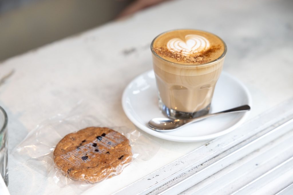 ▲スイーツは全てグルテンフリー。健康を意識する人やアレルギーの人など乳製品を控えている人も味わえる、ヴィーガンの「チョコレートチャンククッキー」も人気です