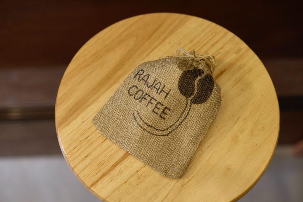 ▲フリーパス特典はラージャーコーヒーオリジナル麻袋ミニ巾着。フリーパス(のりおりくん、江の島・鎌倉フリーパス)を提示し、コーヒー豆またはドリップバッグギフトを購入した方にプレゼント!