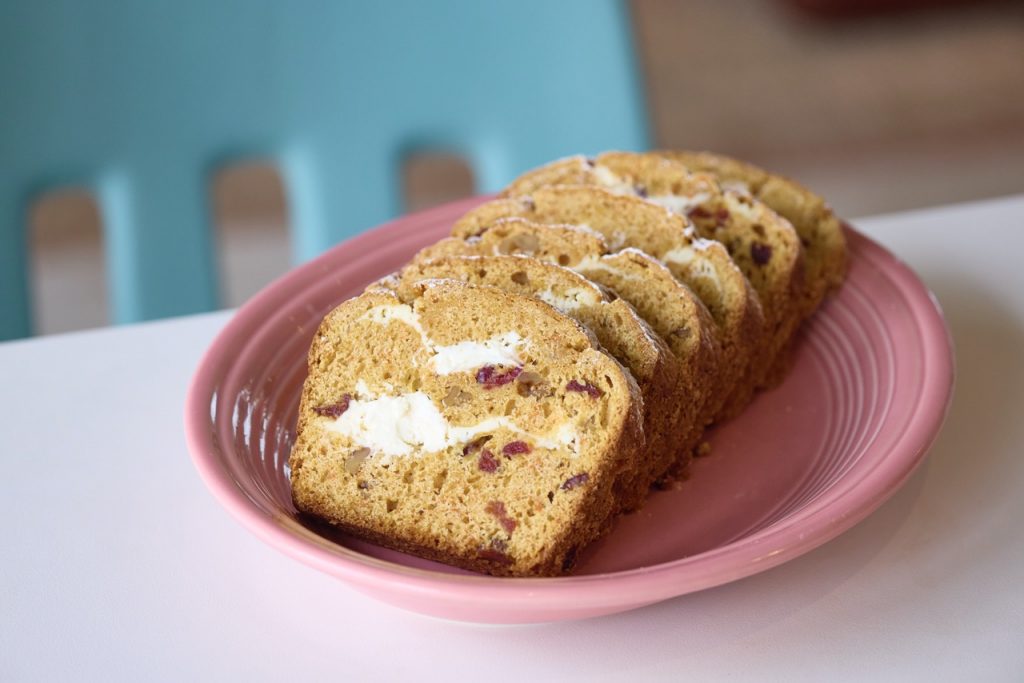 今回、秘密の鎌倉のために考案したのは、鎌倉のレンバイ(朝市)で仕入れた地産の新鮮な人参を使用した「カマクラキャロットケーキ」。クリームチーズにハチミツの甘さとレモンで風味づけしたフロスティングをサンドして焼き上げることで、どこから食べてもクリームと一緒に味わえるよう、またテイクアウトもしやすいようにアレンジ。5種のスパイスと米粉をブレンドすることで“しっとりもっちり”した香り高い生地に、口に入れる度にほんのり感じるスパイスと、クランベリーの酸味やくるみの香ばしさもアクセントです。