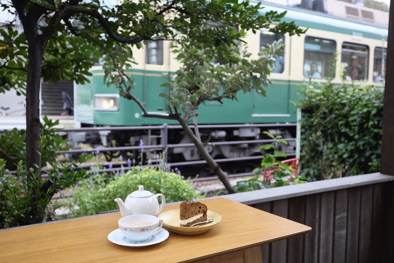 ▲線路沿いの小径に面したカウンター席は、江ノ電との“映えスポット”特等席。電車がのんびりと行き交う風景に、日頃の忙しさも癒されるひとときです