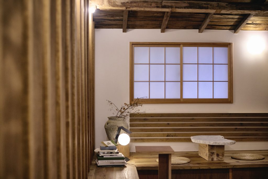 内装は、北鎌倉を拠点に数々の古民家や廃墟同然の空き家などのリノベーションを手掛ける建築家・宮田一彦さんによるもの。店内には、お気に入りの温もりを感じるブラジル製の照明や、60年もののBRAUN製レコードプレイヤー、旅先で手に入れた小石などがさりげなく点在し、店主のエッセンスがあちこちにちりばめられています。