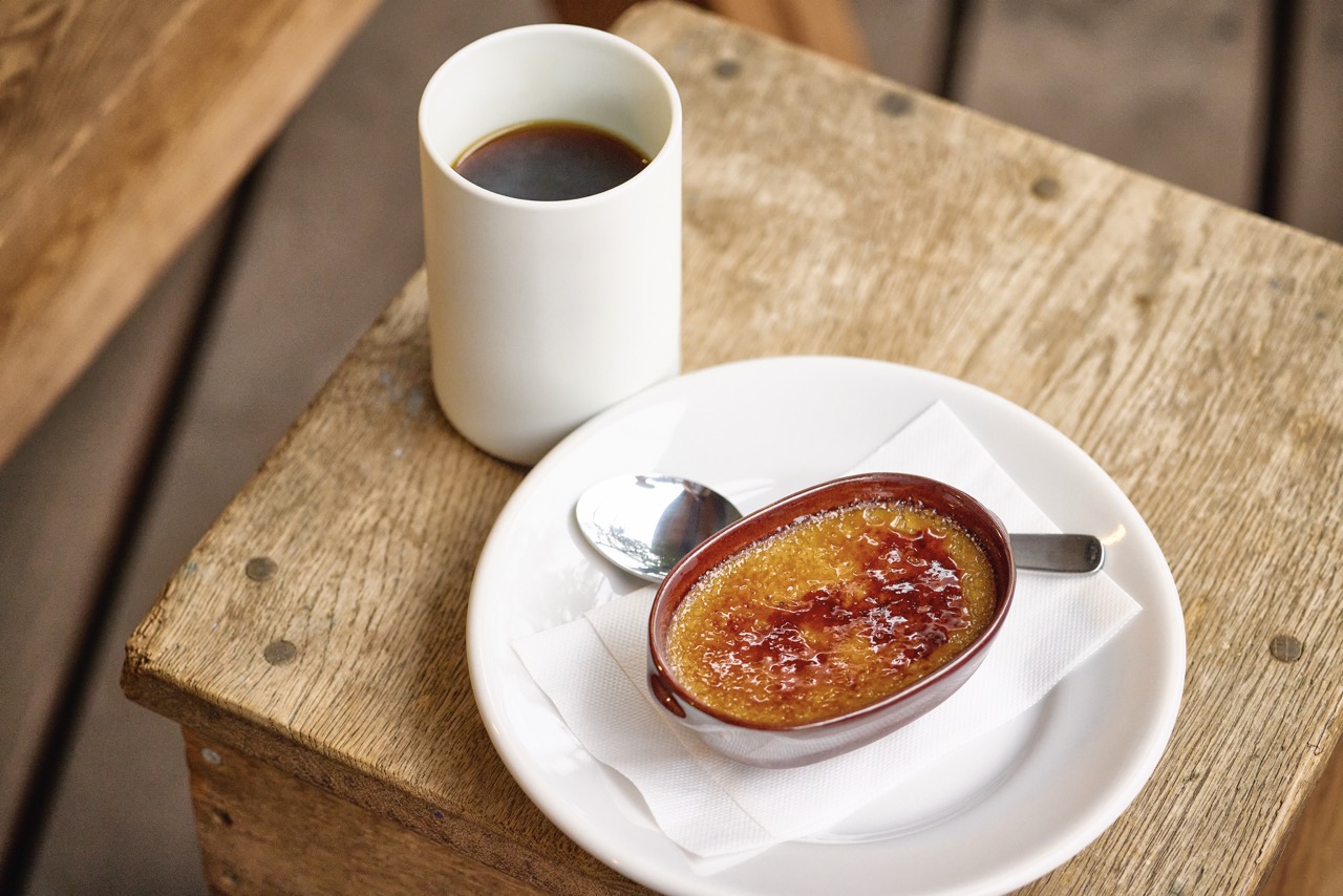 ▲ホットコーヒーは香りが立つよう選んだ有田焼のカップで提供。「ハンドドリップコーヒー」。自家製の「エスプレッソ・クレームブリュレ」。クリームに混ぜるエスプレッソは、エチオピアやコロンビアなど日によって変わります