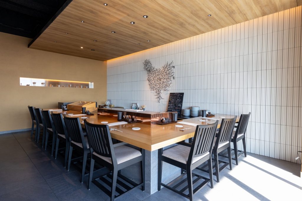 ▲焼き場を備えたカウンター席は、窓側の江の島を望む側と、店内奥にも完備。この他、ゆったりと寛げるソファー席もあり、予約の際に席の希望を伝えることもできます