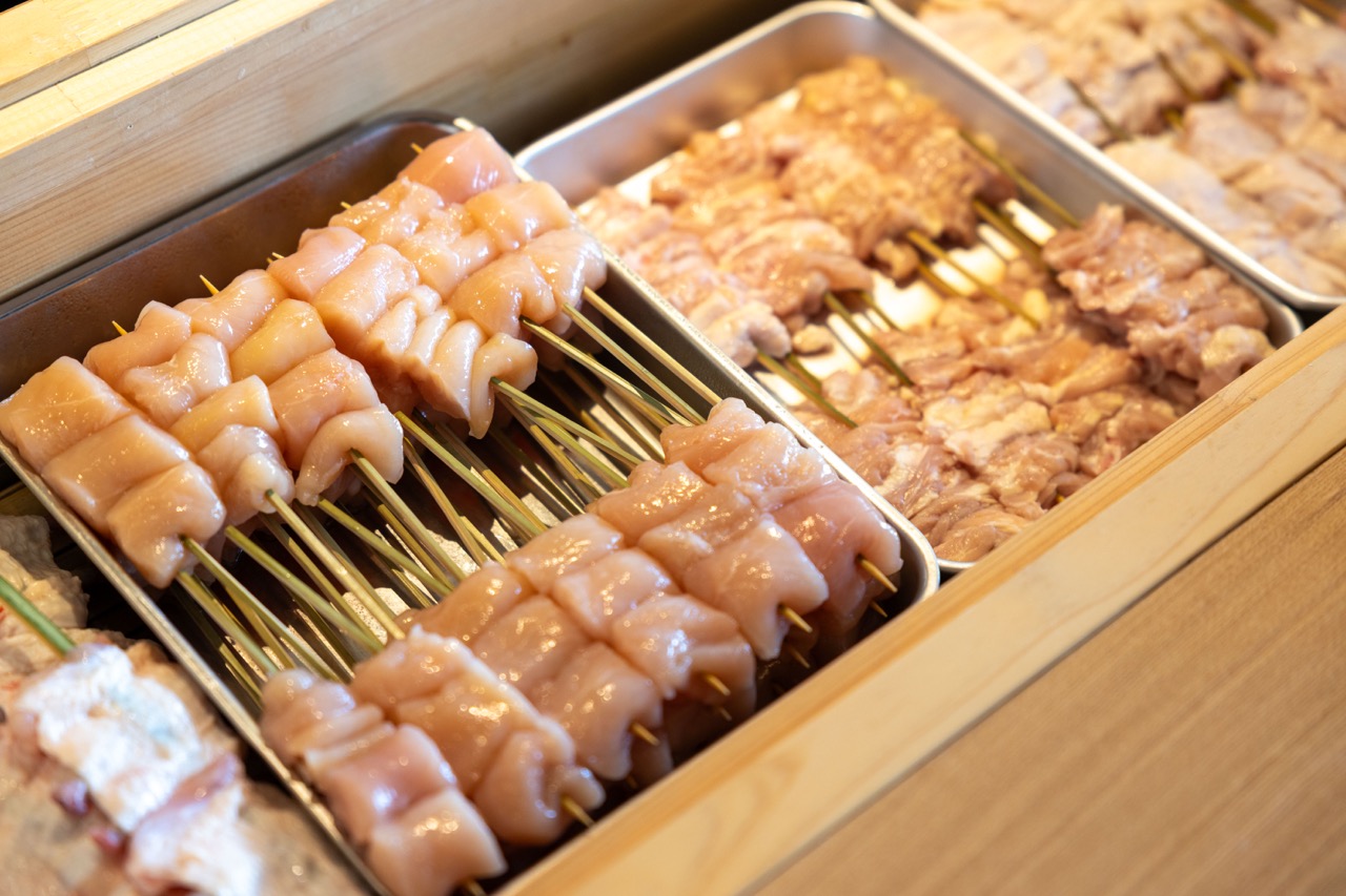 素材と鮮度にこだわり、朝締めの博多地鶏と築地から直送する海鮮を国産の備長炭で丁寧に焼き上げることで、外は香ばしく中はふっくらとした食感が特徴。脂の乗ったモモ肉や柔らかな食感の砂肝、ジューシーなレバー、淡白ながらコクのあるササミのレア焼きなど、鶏本来の旨味を存分に楽しめる逸品ばかりが揃います。また、海老や穴子など海鮮の旨味をとじ込めた創作海鮮串や野菜とチーズをアレンジしたものなど、多彩なメニューと美しい盛り付けも魅力。カップル、家族、グループなど、どんなシーンにも特別なひとときを演出してくれます。
