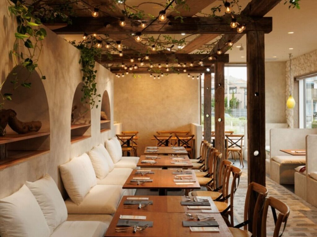 心地よい木のぬくもりと緑が映える店内はまるでイタリアのリゾートのような雰囲気。湘南の海を感じながら、カジュアルなランチから特別な日のディナーまで、様々なシーンで利用できます。