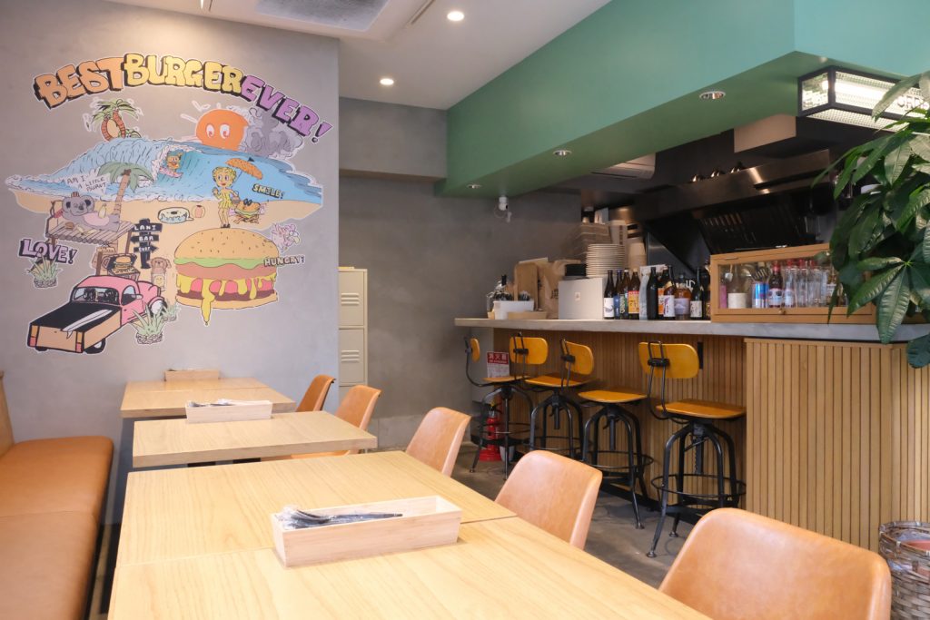 店内は、まるで世界屈指のビーチリゾートにありそうなPOPな空間が広がっています。店名の通り、ハンバーガーを売りにするカフェです。本店は千葉県のサーフィンスポットで有名な一宮にあり、こちらの店舗は2号店とのこと。お店を営むのは、お隣りの茅ヶ崎市ご出身の川畑友吾さん。今年の2月までは、一般社団法人 日本プロサーフィン連盟(JPSA)主催のS.LEAGUE(国内プロサーファーのリーグ戦)に10年超参戦していたプロサーファー!前シーズンで、リーグ参戦に一区切りをつけ、現在は一宮と湘南を拠点にサーフィンスクールとご自身の大好物というハンバーガーのお店を経営しています。