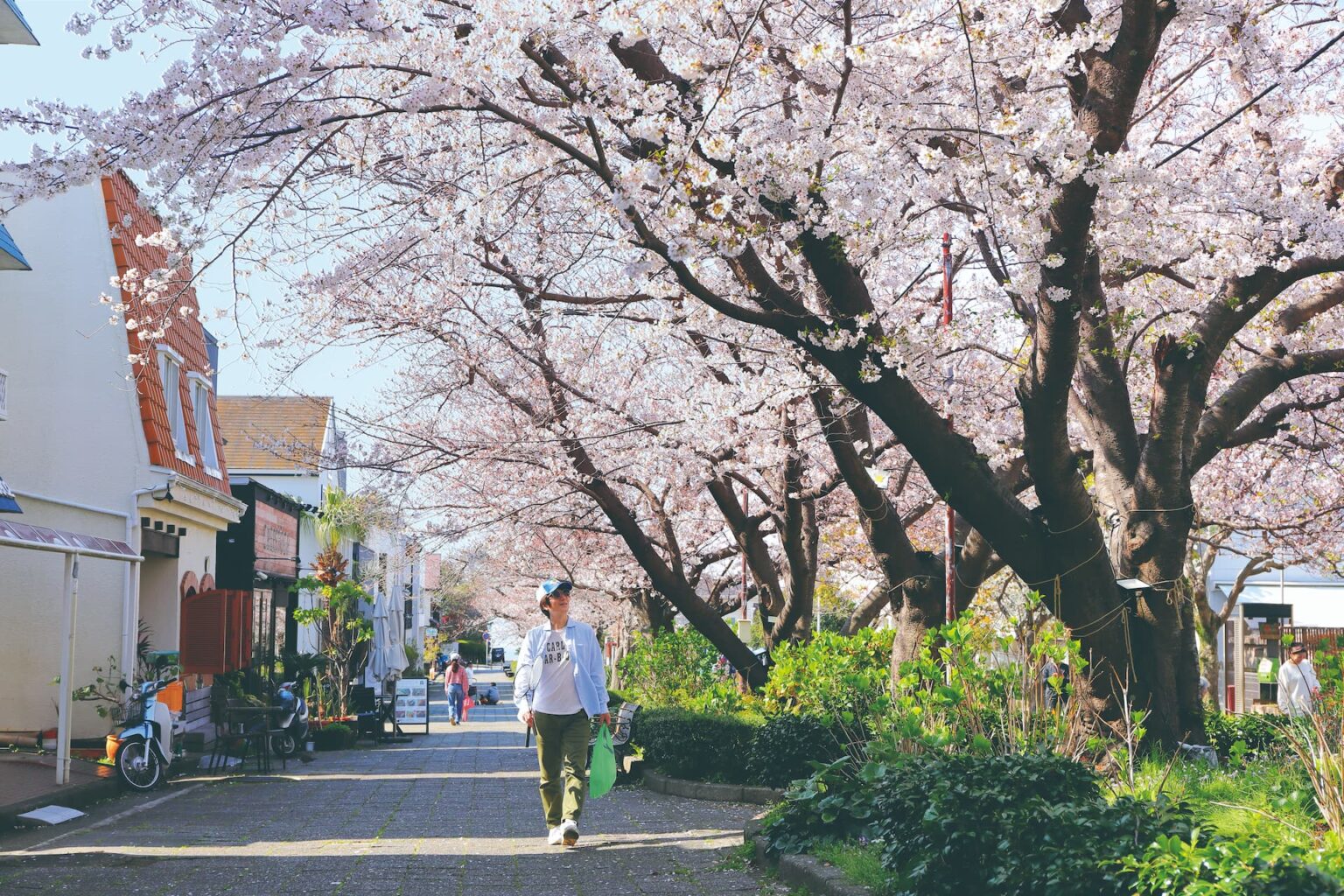 そして何より、この道の良さは「生活の気配」と一緒に桜を味わえるところ。カフェの椅子が外に出ていたり、自転車が止まっていたり、誰かの散歩がすっと横切ったり。そんな何気ない瞬間が、桜の下ではちょっと特別に見える。静かに、でも確かに“海街の春”を感じたい日に。急がず、深呼吸しながら、ただ歩くだけで満たされるプロムナードです。