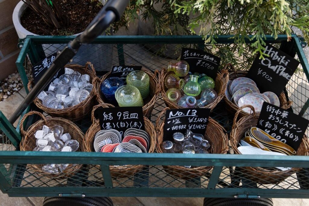 ▲店の外には、蚤の市に訪れたような雰囲気も楽しいディスプレイ
