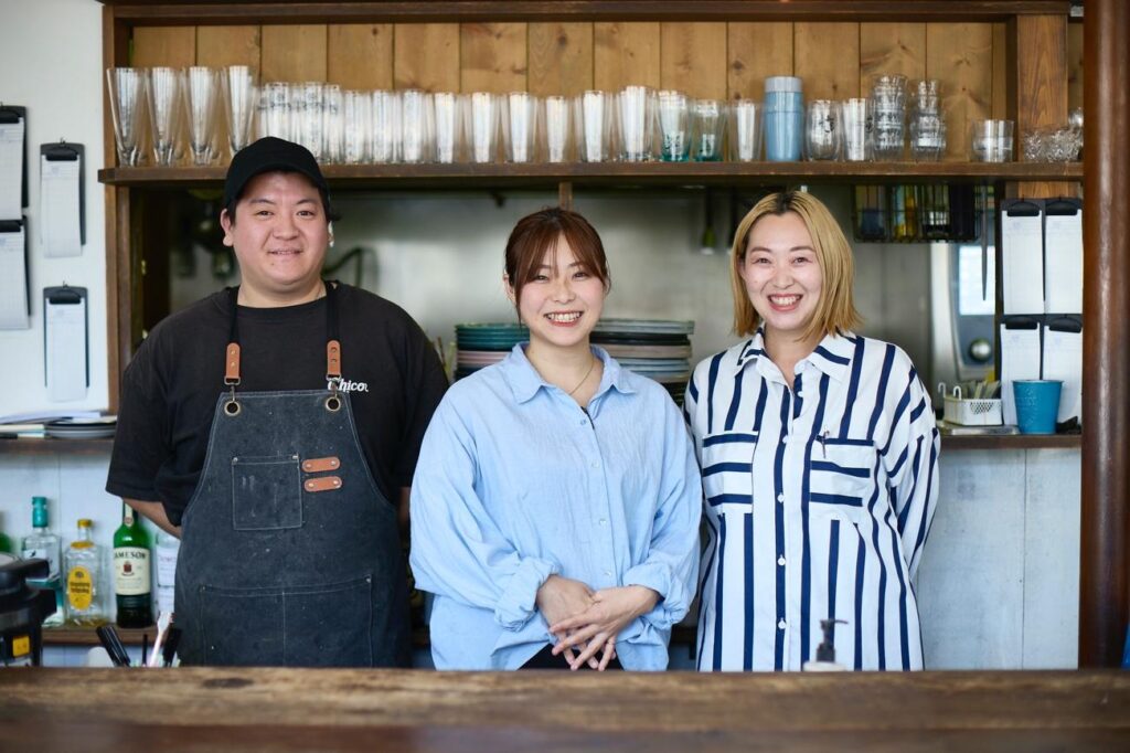 ▲左から、料理長の鮫島さん、店長の石川さん、ホールスタッフの河本さん。「日本各地の産地に出向き、生産者との出会いも大切にしています」と話す店長の石川さん。“湘南にオイスターバーがあったら“という夢を叶えました