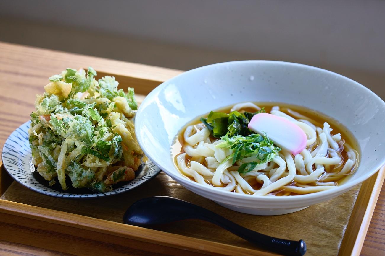 出汁は瀬戸内産のいりこをはじめ、利尻昆布や5種の節を使い丁寧に引いた無添加にこだわり、香川の製麺所に特注するしっかりとコシのあるのど越しの良い麺とも相性抜群。うどんの美味しさはもちろんのこと、とろろ昆布、鶏かしわ天、牛肉などなど、選べるトッピングの豊富さに加え、麺の量を無料で選べるのも嬉しいサービスです。