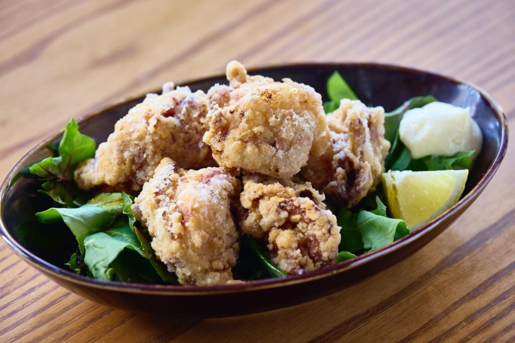 ▲手軽なおつまみも豊富な中で子どもも大人も大好きな一番人気は「うどん出汁の竜田揚げ」。ニンニクもショウガも使わず、出汁に一晩漬け込んだ逸品