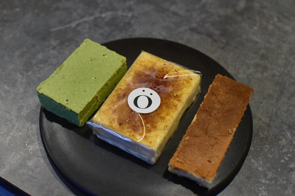 ▲レシピは門外不出。パティシエ特製のチーズケーキは冷凍、半解凍、冷蔵とそれぞれの段階で食感の違いを楽しむことができます。パティシエのおすすめは15〜20分ほど常温で解凍した状態。写真左から、ほんのり抹茶のほろ苦さとクリームチーズのまろやかなコクが調和した「抹茶」、チーズそのものの味わいと香りを堪能できる「プレーン」、やさしい甘さの中に、ほんのりビターな香ばしさが広がる「ビターキャラメル」
