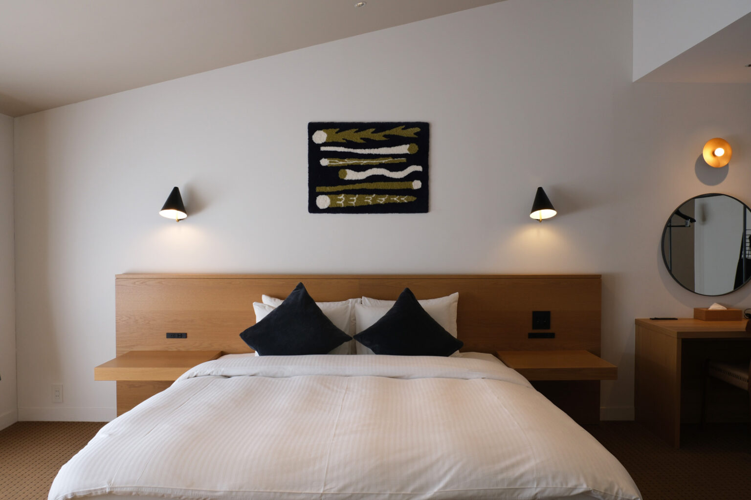 ▲SUPERIOR DOUBLE A(201)のお部屋。屋根の勾配を活かした高さある空間が開放感をもたらします