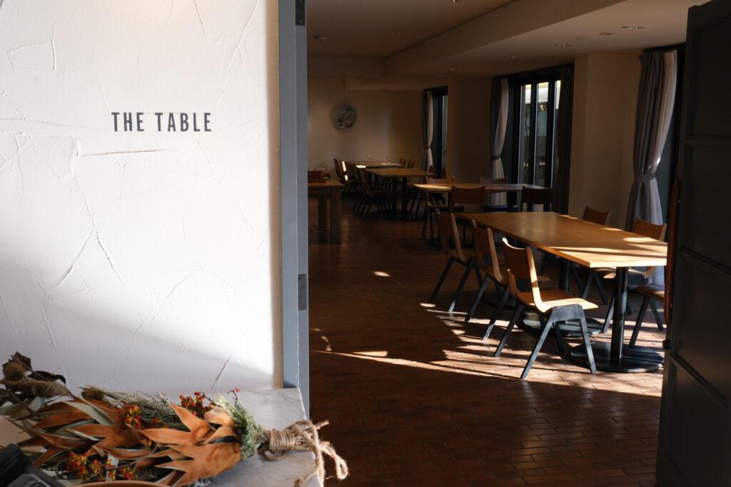 エントランスから入ってすぐ。右手にはレストラン【THE TABLE】があります。由比ガ浜エリアでは数少ない朝食からランチ、ティータイム、そしてディナーまで営業している頼もしいお店で、宿泊せずとも利用することができます。