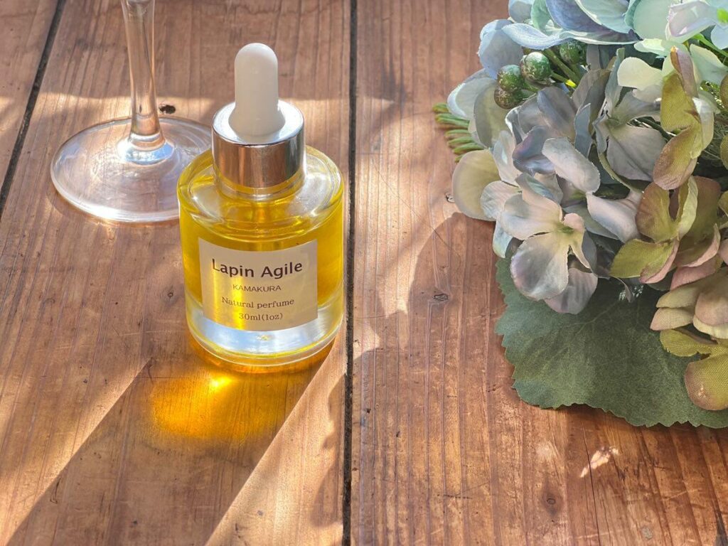 ここ「ラパンアジル」では、草花から抽出した天然精油を重ね、いまの気分や思い出に寄り添う一本を自分の手で調香できます。