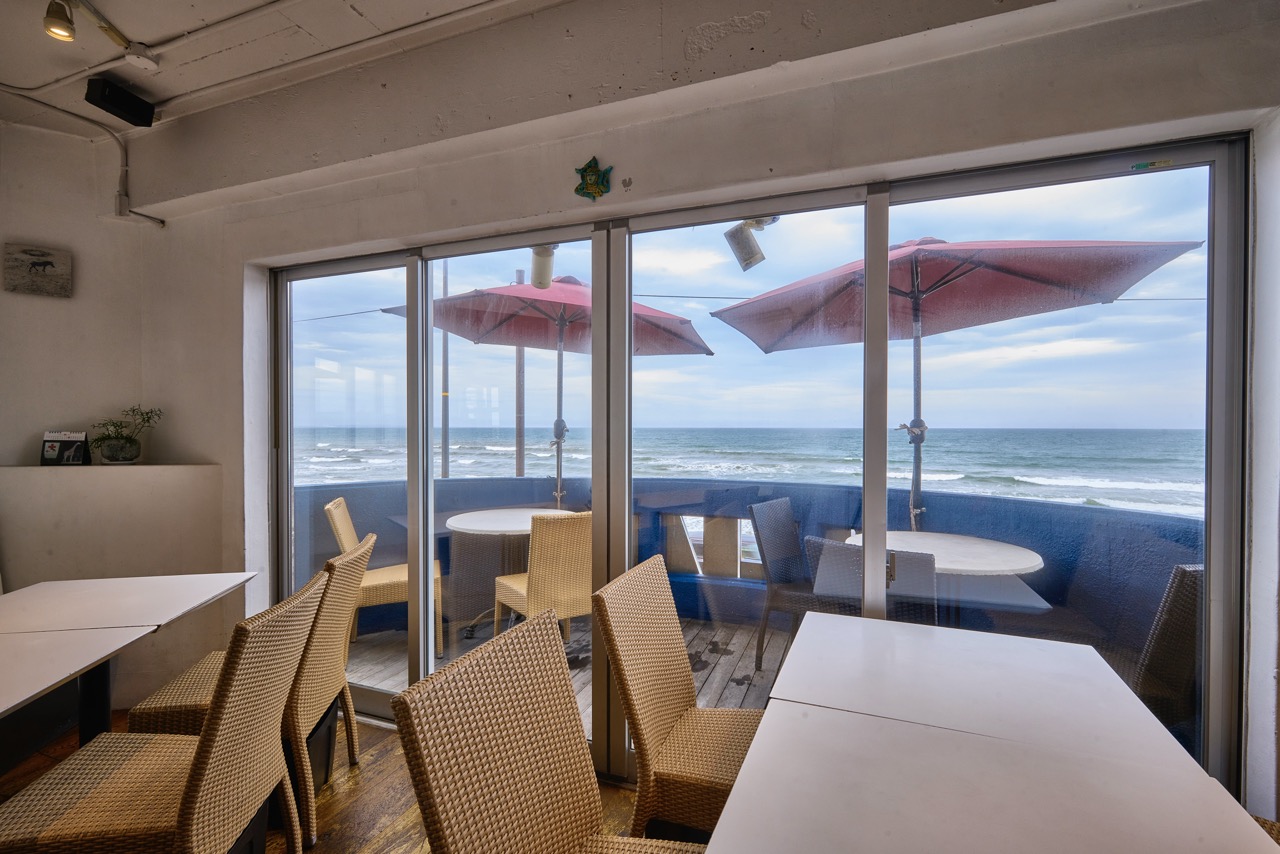 ▲店内はどこからでも海を感じられる贅沢な空間。リゾート地で休暇を楽しむような気分でのんびりと、お腹と心も満たしてくれます