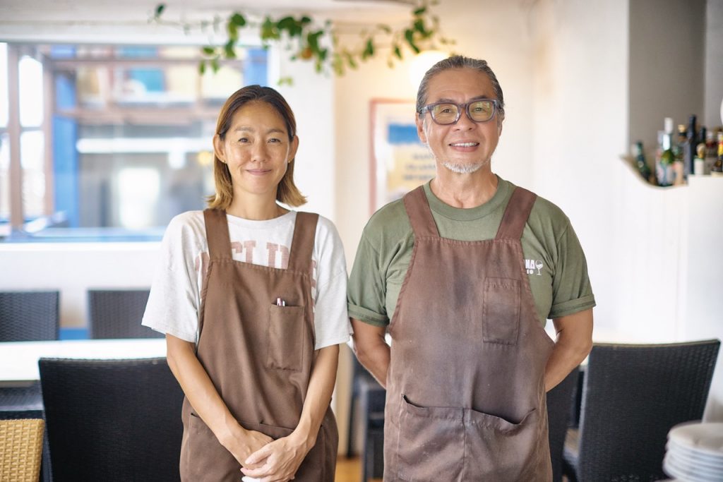 江ノ電「七里ヶ浜駅」から海に向かって徒歩3分ほど、国道134号線沿いという湘南屈指のロケーション。ビルの2階の扉を開けると、目の前に水平線まで見渡す青い海が広がります。誰もが気軽に立ち寄れて気取らずワイワイとお酒を酌み交わす、そんなイタリアの酒場をコンセプトに、フレンチとイタリアンの料理人として40年のキャリアを持つ店主の慶司さんと瑞穂さん夫妻が営む【SICILIANA(シチリアーナ)】。昼も夜も地元の常連客で賑わう人気店です。