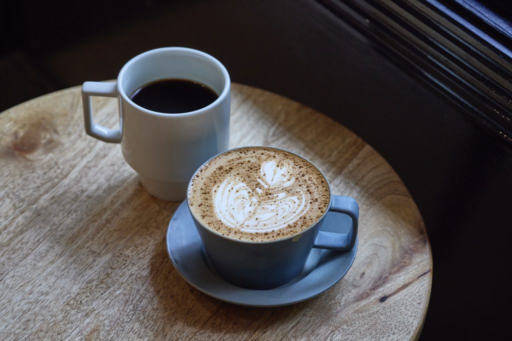 ▲SAZANAMI COFFEE・秘密のえのかま限定メニューは、「フレンチプレスで淹れたマンデリン」550円(上)と、自家焙煎のエチオピアとコロンビアの中深煎りのブレンド豆を使ったエスプレッソに、オリジナルのチャイシロップとスチームミルクを入れた「ダーティチャイラテ」700円(下)。どちらも沢田さんがシアトルのカフェで働いていた時に出会った、思い出が詰まった新メニューのドリンクです