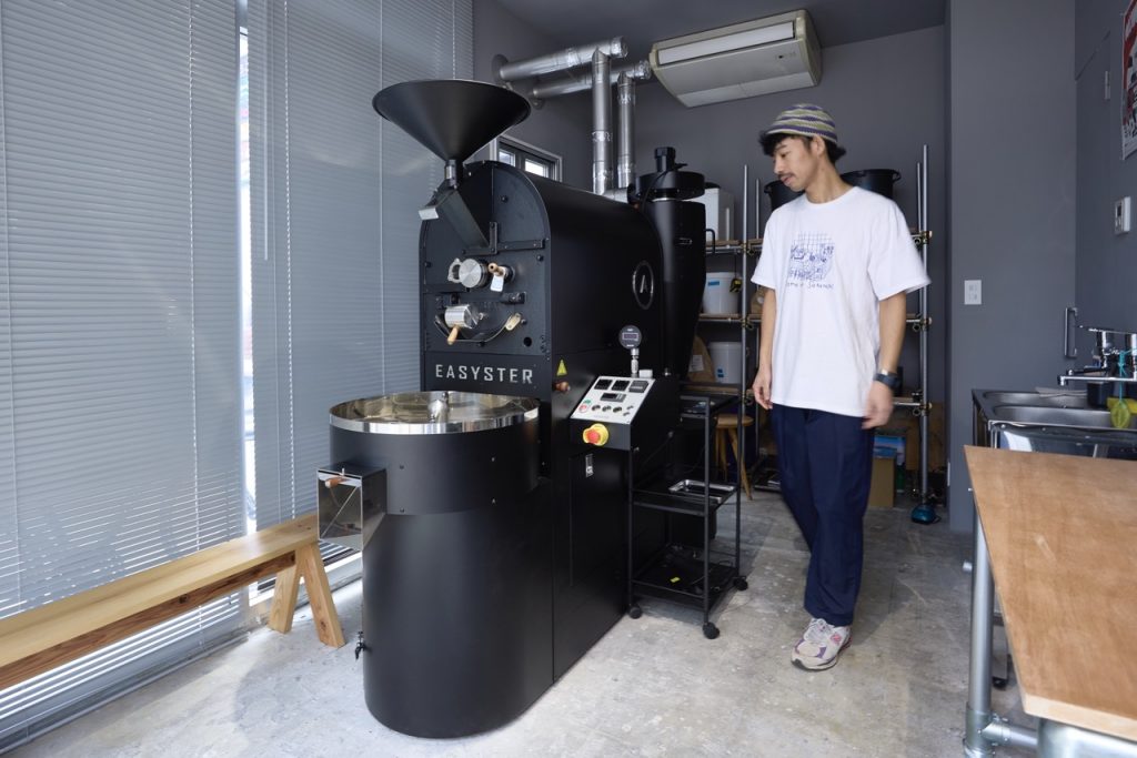 ▲世界中の素敵なコーヒーをもっとたくさんの方とシェアしたり、焙煎の香りを海街の匂いとして共有したり、自家焙煎を始めることでお客様と楽しめることが増えると確信し自家焙煎機を導入したと話す沢田さん。店の斜め前にオープンしたギフトショップ「Bouqet(ブーケ)」に併設し、通りの角地に敢えて全面ガラス張りで“見せる”焙煎所に設えました。今後はシェアロースターとしても稼働していく予定