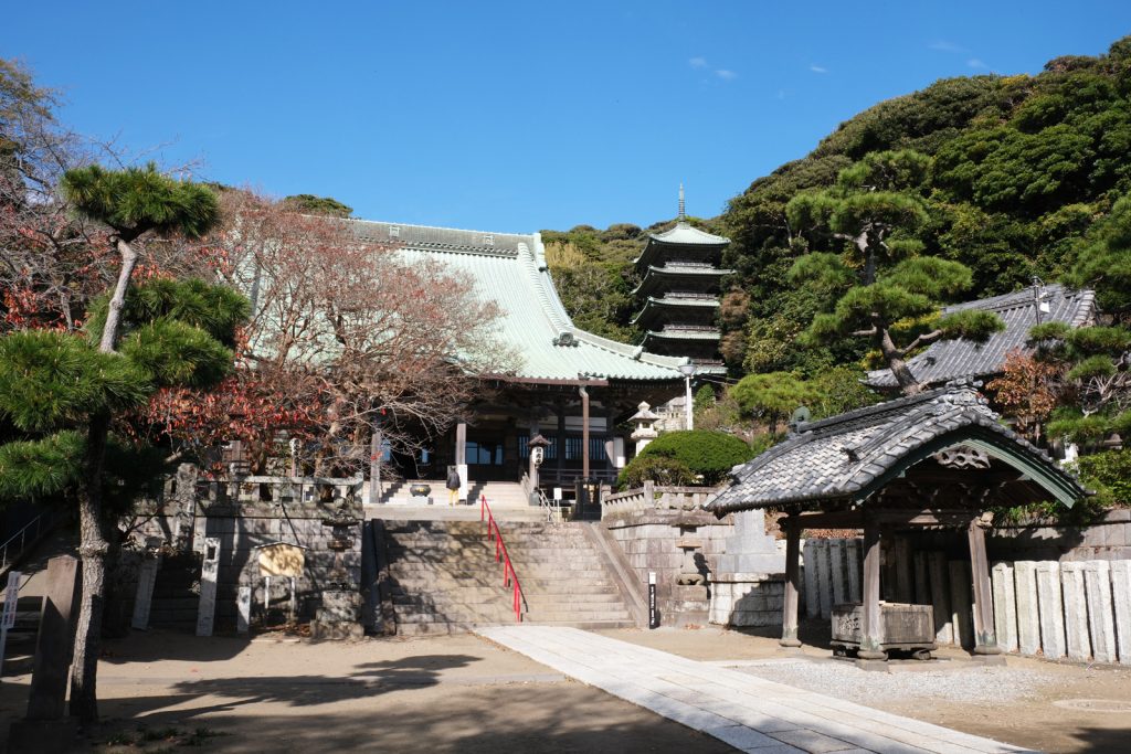 ▲目印は江の島ヨットハーバーのヨットハウス。ここと道路をはさんで向かい側にある聖天島公園奥に文佐食堂があります